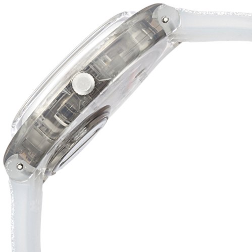 White silicone strap and plastic case with silver-tone dial