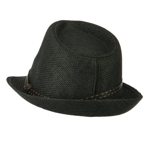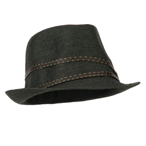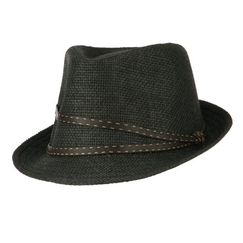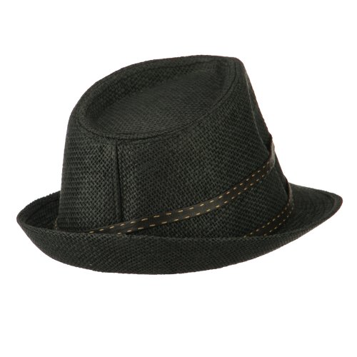 -. Binding : Apparel -. Brand : Rasta/NYE -. Department : womens -. Feature : Made of 100% paper straw. / One size fits most, fitting up to 7 1/4. / Adult/Woman. / Lined with an inner hat band. / Crown measures 4.5 inches deep. -. ProductGroup : Apparel -. ProductTypeName : HAT -. Title : Stitched Hat Band Straw Fedora - Black