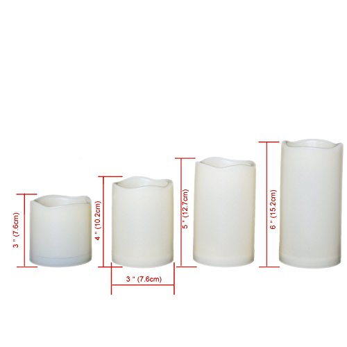 Candle Choice 4 PCS Outdoor Flameless Candles with Remote and Timer, LED Pillar Candles, Weatherproof Battery Operated Candles, Long Battery Life, Size 3”x3”, 4”, 5”, and 6”