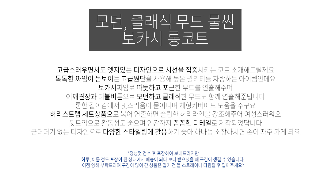 .같은 사이즈라도 체형에 따라 핏감이 조금씩 다를 수 있습니다.
