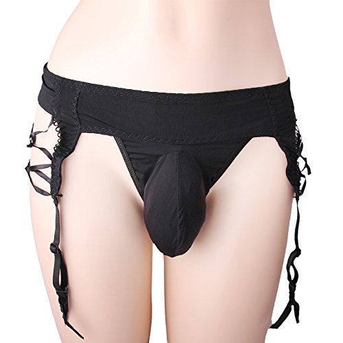 -. Feature : 95% Polyester 5% Spandex, / Hip/Waist measurement 24"-28" fit M; 28"--32" fit XL; 32"-34" fit2XL; 34"-36" fit 3XL / Do not iron, Hand wash,1Panty+ 1Garter / sexy panties for men with pouch in front, / HOW TO SELECT RIGHT SIZE: Please measure your hips (NOT WAIST) with a measuring tape to assure that the panties will fit. since most of them fall on the hips. Do not go by your jean size!