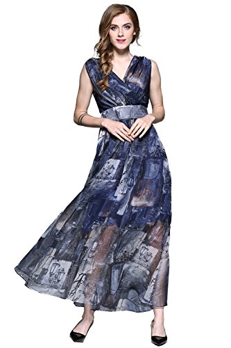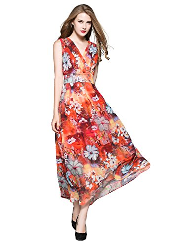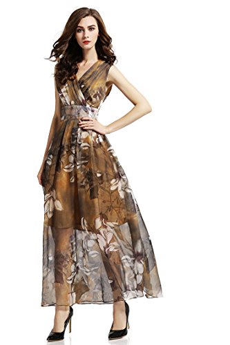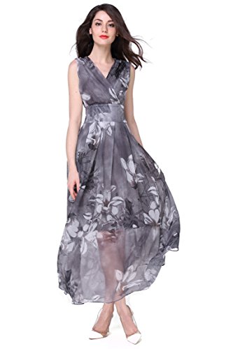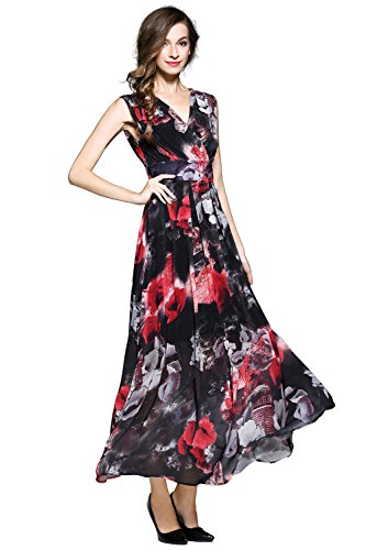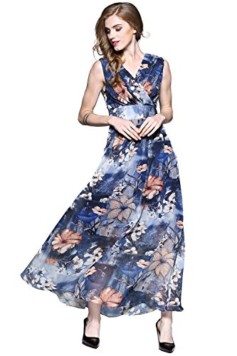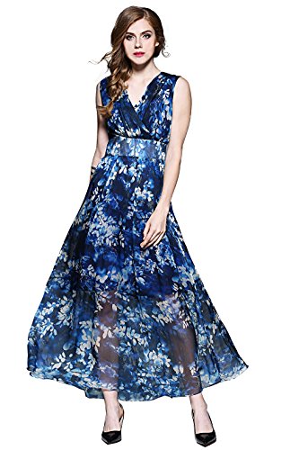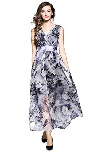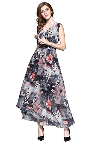XS:===Length:139.0cm/52.9", ===Shoulder:37.0cm/14.1", ===Bust:84.0cm/31.9", ===Waist:65.0cm/24.7"S:===Length:140.5cm/53.4", ===Shoulder:38.2cm/14.5", ===Bust:89.0cm/33.8", ===Waist:71.0cm/27.0"M:===Length:142.0cm/54.0", ===Shoulder:39.5cm/15.0", ===Bust:94.0cm/35.7", ===Waist:77.0cm/29.3"L:===Length:143.5cm/54.6", ===Shoulder:41.0cm/15.6", ===Bust:102.0cm/38.8", ===Waist:83.0cm/31.6"XL:===Length:145.0cm/55.1", ===Shoulder:42.5cm/16.2", ===Bust:110.0cm/41.8", ===Waist:90.0cm/34.2" This maxi chiffon dress features surplice V-neck, sleeveless design and concealed zipper closure. Banded detail defines your waist and make you look slimmer. It is lined. Allover flower gives this style a chic and stylish look. Soft pleats flows gracefully to create a supremely flattering silhouette.Feature