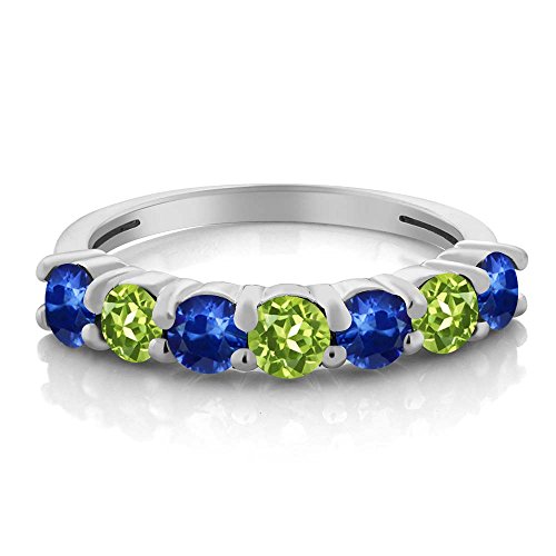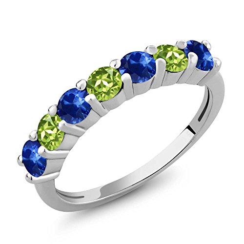 -. Title : 1.50 Ct Round Blue Sapphire Green Peridot 925 Sterling Silver Anniversary Ring (Available in size 5, 6, 7, 8, 9)