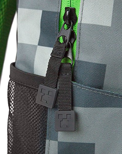 Studio : JINX Publisher : JINX Binding : Toy Product Description This cool grey backpack is perfect for the Minecraft fan. It has great details, with a creepy "Creeper Inside" design on front, Grey block pattern throughout, side pocket and back straps, and padded back with custom stitching. Interior has padded laptop/tablet compartment. Measurements approximately 17" x 12" x 5". 0