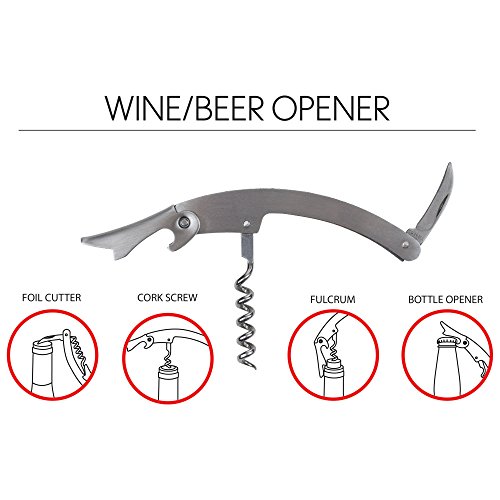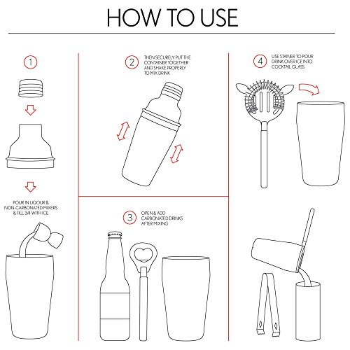 -. Feature : This handsome set is an essential addition to any personal bar / Guests will look on in admiration as you prepare their drinks with expert care / Includes 18.6oz Cocktail Shaker, Strainer, Bottle Opener, Corkscrew, Double Jigger, Ice Tongs, and Stainless Steel Rack / Great house warming idea / Limited lifetime warranty