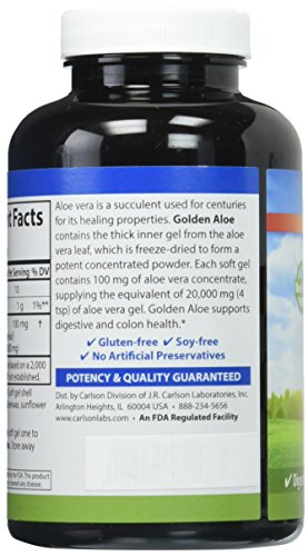 ReleaseDate : 2017-03-02 Studio : Carlson Labs Publisher : Carlson Labs Binding : Health and Beauty Product Description Aloe Vera is a desert plant used for centuries for its healing properties. Golden Aloe contains the thick, inner gel from the aloe vera leaf, which is freeze-dried to form a potent concentrate. Each soft gel contains 100 mg of aloe vera concentrate, supplying the equivalent of 20,000 mg (4 tsp) of aloe vera gel or 1 c of aloe vera drink. Golden Aloe supports a healthy digestive system and helps soothe the stomach. 0
