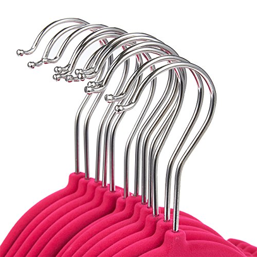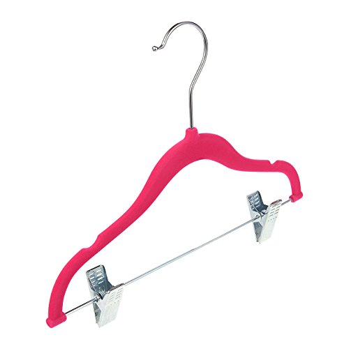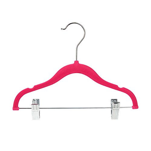 24 Hot Pink Velvet Baby Clothes Hangers - Ultra Thin No Slip Nursery Hangers With Clips For Baby, Toddlers, Kids, Children - 12"