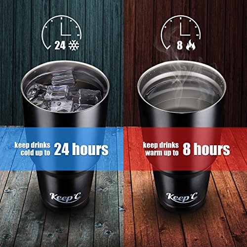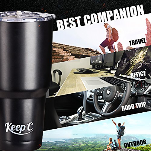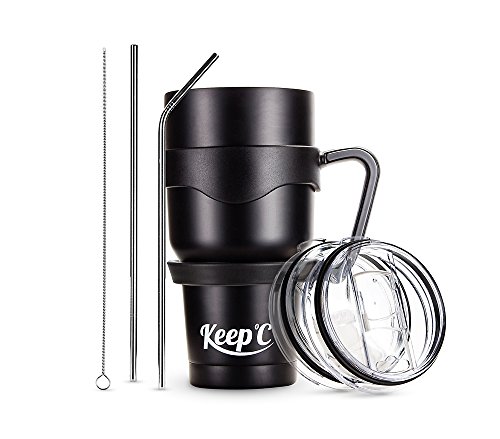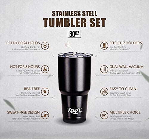 KEEPOC Stainless Steel Vacuum Insulated Tumbler Set 30 ounce Double Wall Travel Mugs with Lid, Straw and Brush, Black