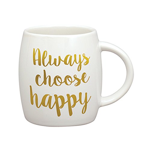 -. Title : Always Choose Happy White and Metallic Gold 14 ounce Ceramic Stoneware Mug