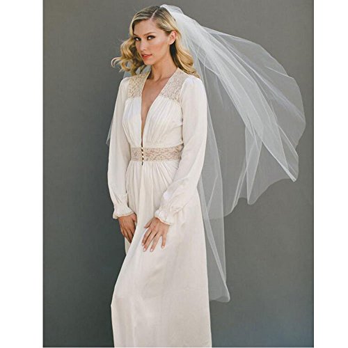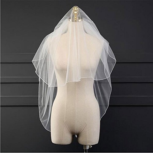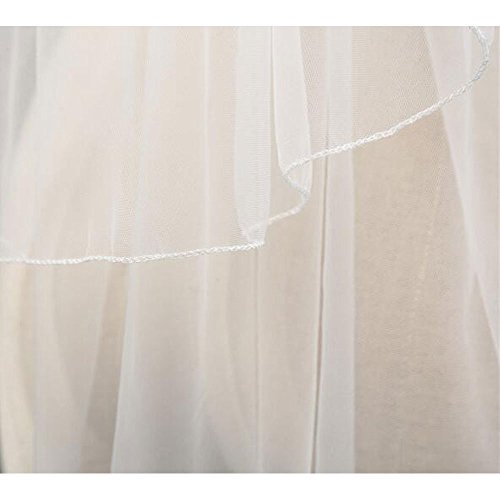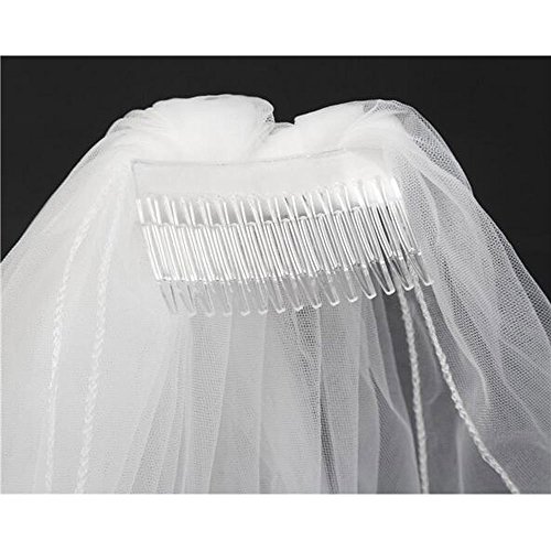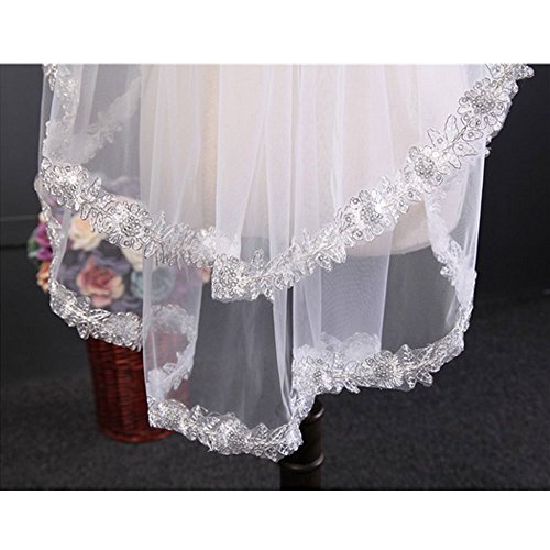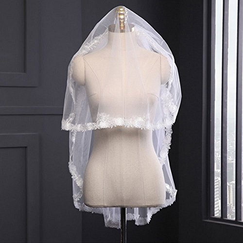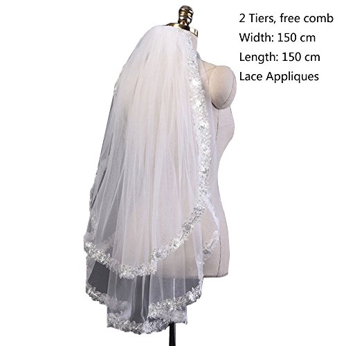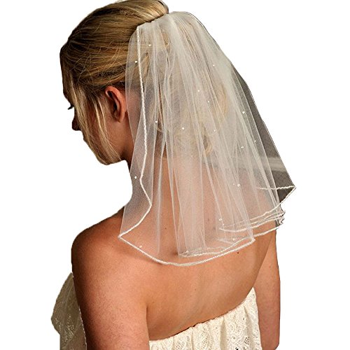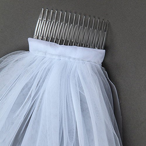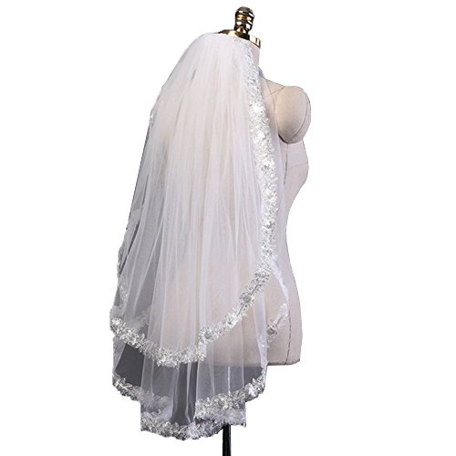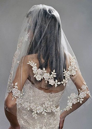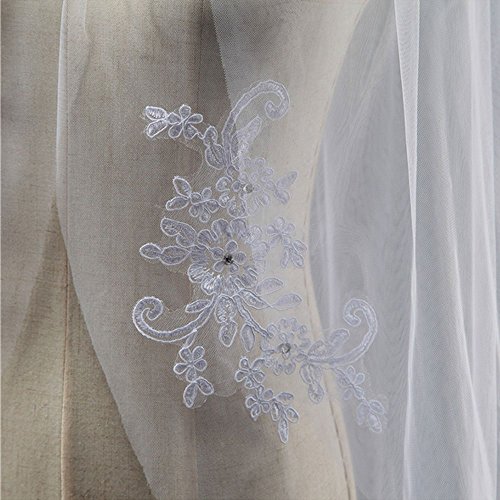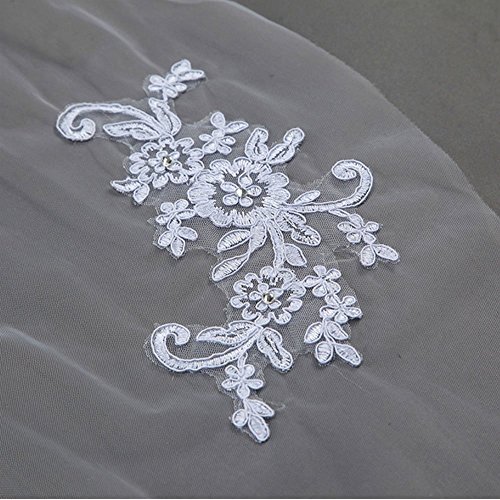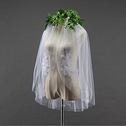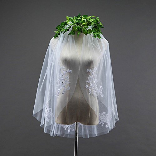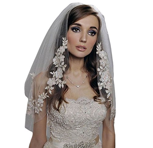 | Dannifore Beads White/Ivory Short Bridal Wedding Veils with Comb Lace Appliques |