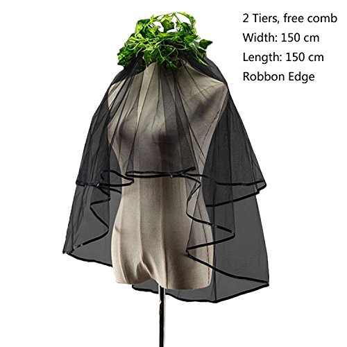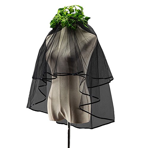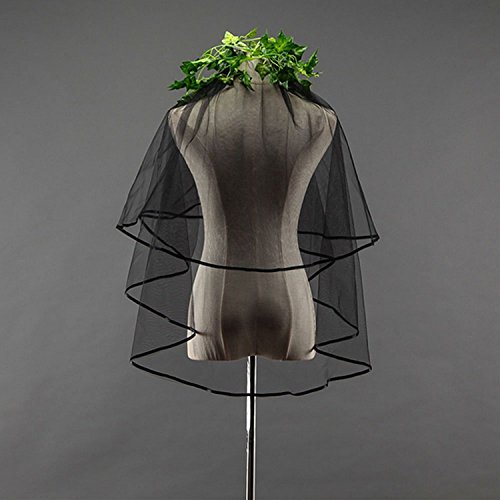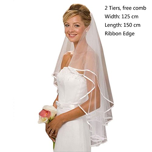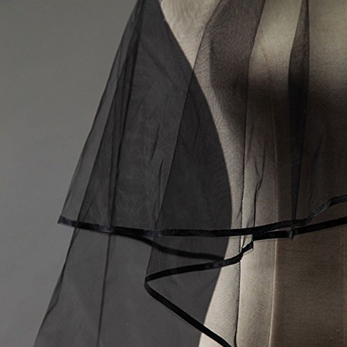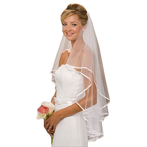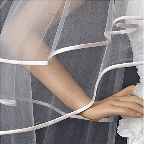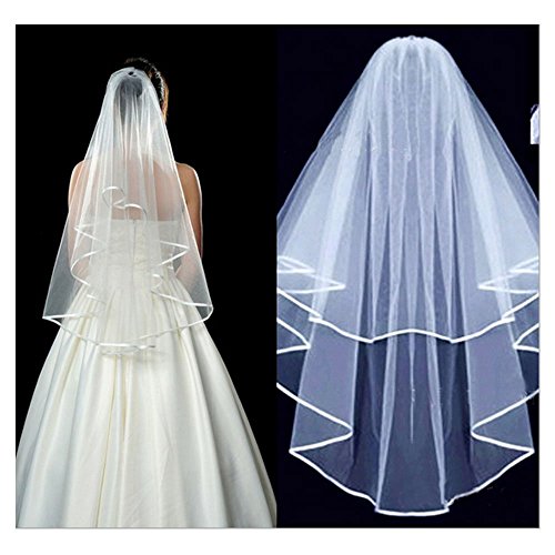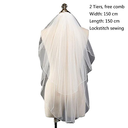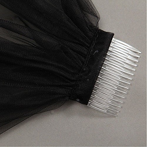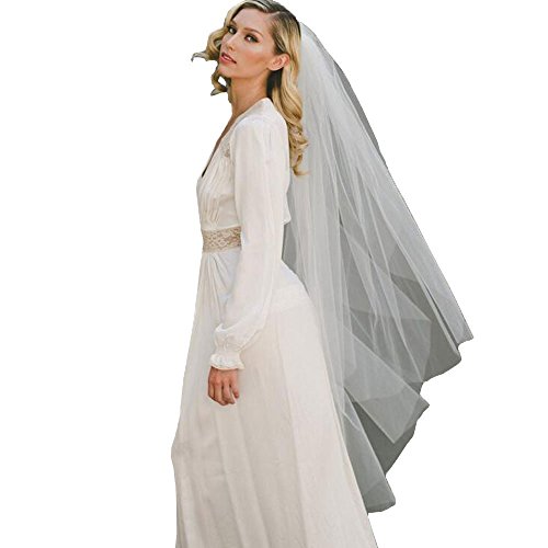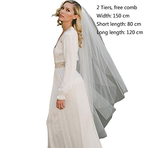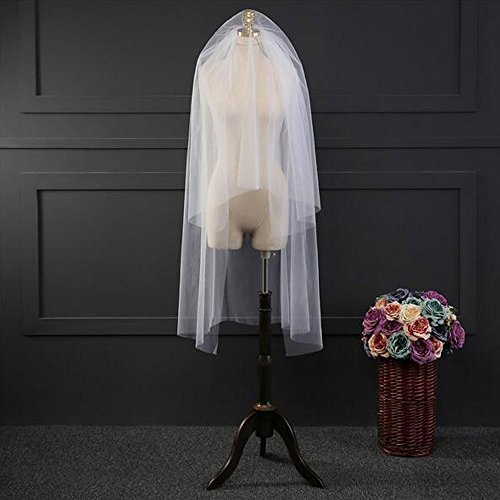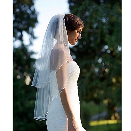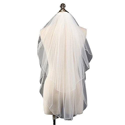 | Dannifore Beads White/Ivory Short Bridal Wedding Veils with Comb Lace Appliques |
