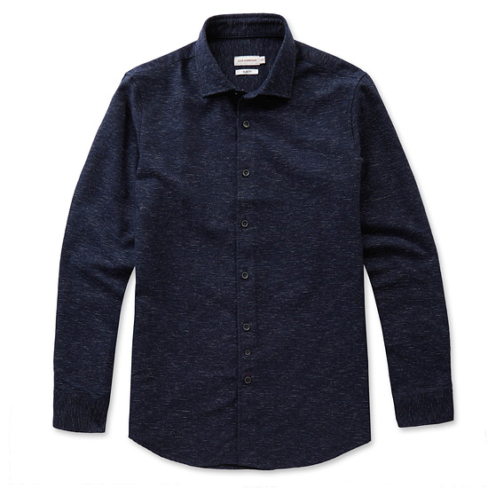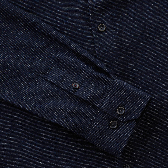 - 가로 스트라이프 조직의 멜란지 컬러감으로 멋스러운 남성 셔츠.