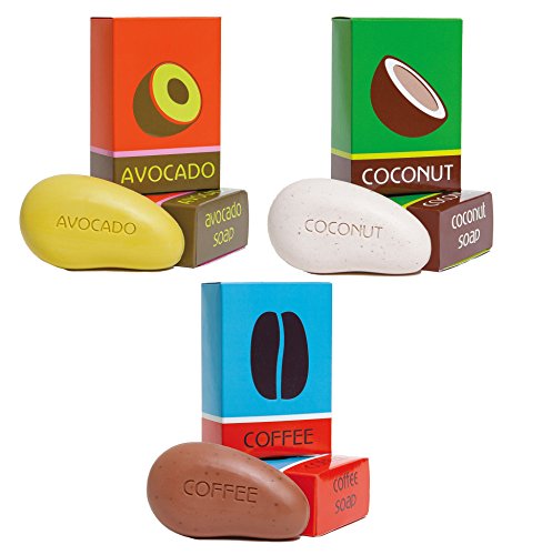 Organic Exfoliating Bars of Soap, Natural Ingredients, Assorted Scents, Avocado Coconut & Coffee, Set of 3, 3.5 oz. Each