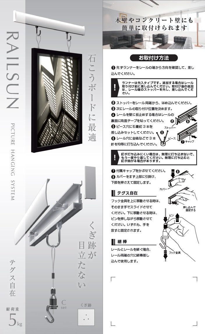We use gypsum nails that are not conspicuous in installation marks and damage to the wall is also minimal.