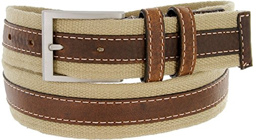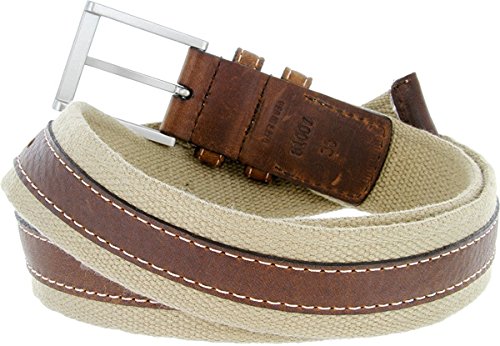 (Hagora)/Accessories/Belts Buckles/DIRECT FROM USA/Hagora Men 1-1/2" Wide Genuine Leather Cotton Web Stitched Nickel Buckle Belt