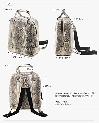 -. Feature : 旅行に出張に!かっこよく魅せる大容量のリュックサック。 大きなダイヤモンドパイソンの革で印象的な 大人が持つに相応しい高級感漂う[HALEINE]のバッグです。 メインの収納には仕切りがなく 一般的な女性誌を入れても高さがあまる、充分な収納力。 このバッグ一つで、ちょっとして出張や旅行にも使えます。 / (No. 06000242 r ) / ■サイズ 横 30cm × 高さ 36cm × マチ最大14cm ショルダーベルトは64~86cmの間で調節可能 【開閉】ファスナー 【仕様】■メイン収納・フリーポケット×2/ファスナーポケット×2 【素材】・ダイヤモンドパイソン/内装:スエード調の生地 【重量】720g 【備考】 ・メイン収納は南京錠で鍵をかけることができます。 ・ショルダーベルトはナス冠で取り外し可能となっています。