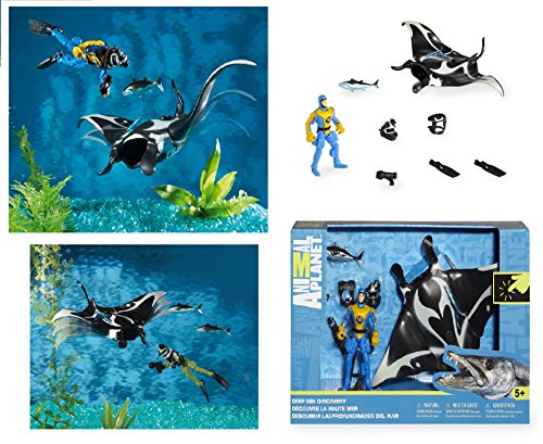 -. Feature : Explore the ocean's coolest creatures with this awesome playset / Seek out one of the ocean's strangest and most fascinating creatures with this cool Animal Planet Discovery Playset, a Toys R Us exclusive! / The manta ray figurine is designed in stunning, lifelike detail and moves its wing-like fins at the touch of a button, while the diver figure comes with tons of cool underwater photography equipment to help him get the perfect shot of this elusive animal. / Two tuna fish figurines are also included to add even more life to your deep-sea environment. / Includes a manta ray figurine, a diver with accessories and two tuna fish