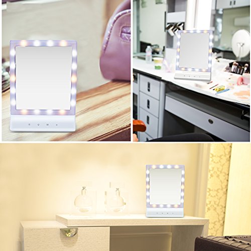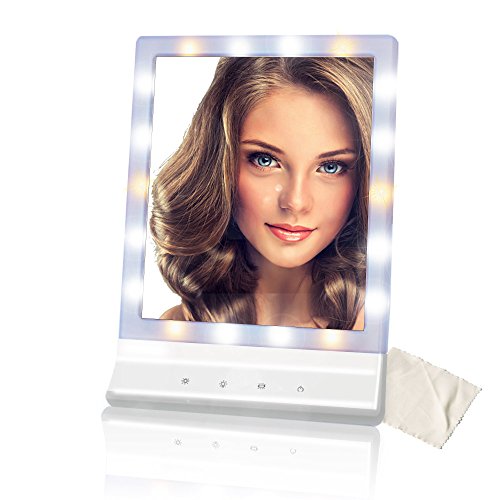 LED Makeup Mirror, LED Illuminated Cosmetic Mirror with Adjustable Smart Touch Settings Vanity Makeup Mirror Beauty Mirror Battery Powered/USB Charging for Tabletop/Travel/Shaving