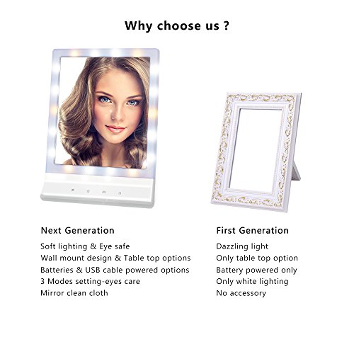 ❤2 POWER WAYS: This make up light can be powered by two ways: 4 pcs AA batteries (not include) -OR- connect it to a USB power source with the provided USB cable (adapter not include).