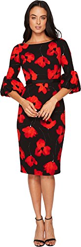 Maggy London Women's Poppy Power Scuba Crepe Sheath with Balloon Sleeve, Black/Red, 14