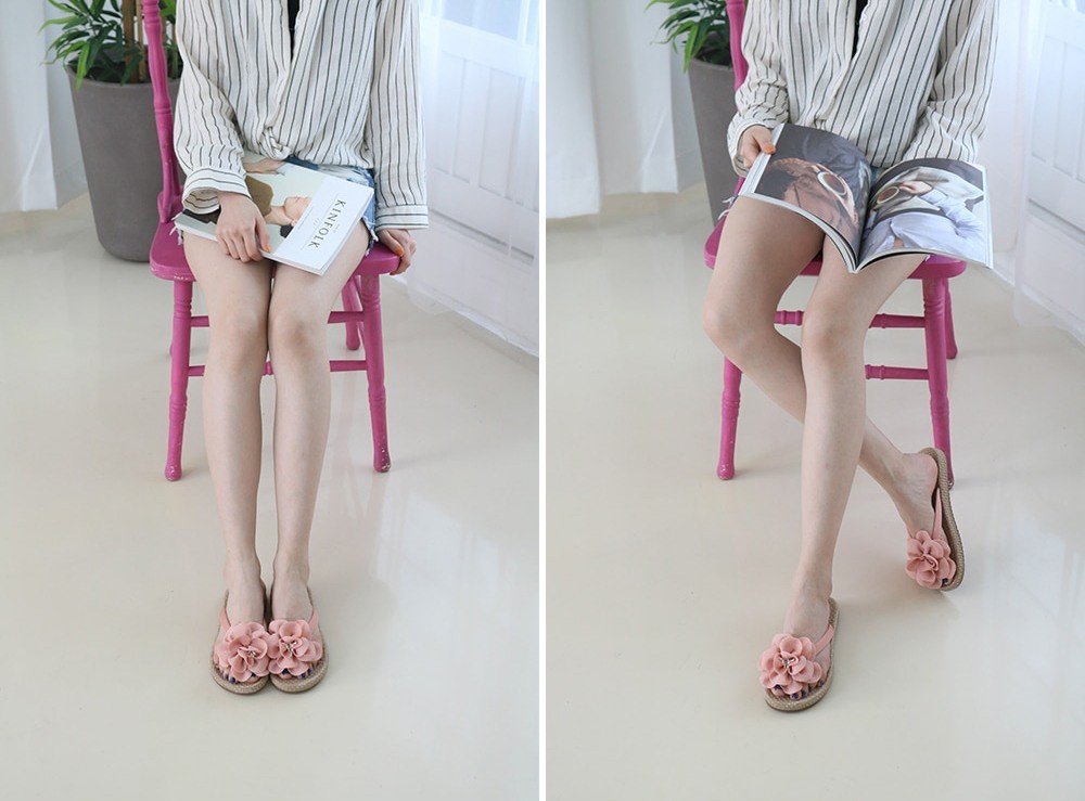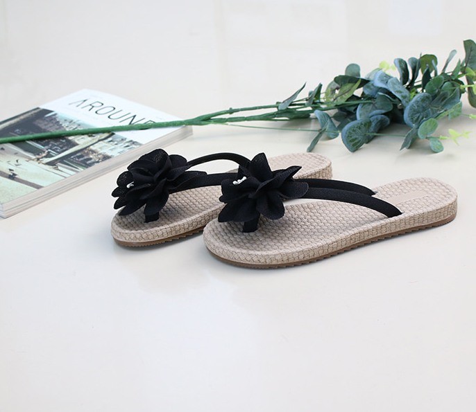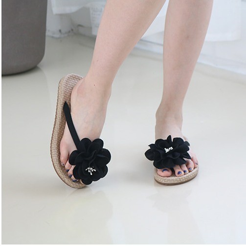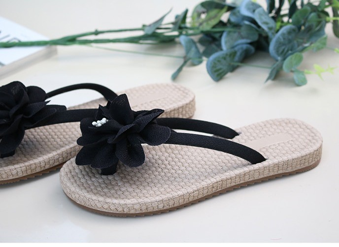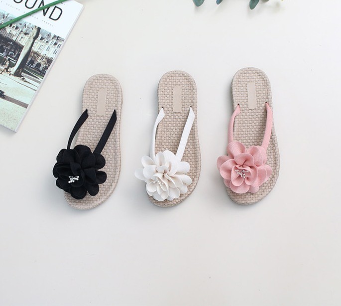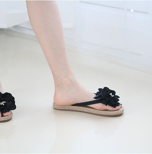 商品名:サンダル レディース トングサンダル コサージュ ペタンコ フラットヒール 2018 春 ファッション 靴 婦人靴