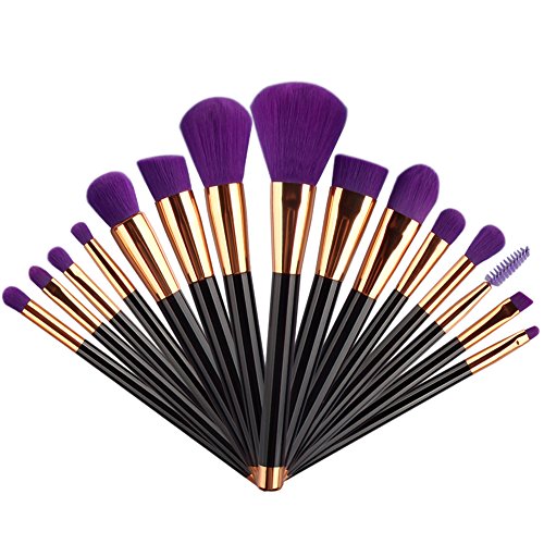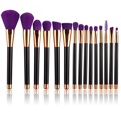 UNIMEIX 15pcs Makeup Brush Set Synthetic Kabuki Comestics Foundation Blending Blush Eyeliner Face Powder Brush Comestic Tool ( Purple)