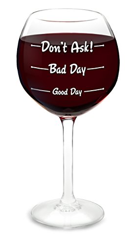 Product Description "How Was Your Day?" wine glass let's the world know what kind of day you really had! Great gift for wine lovers. Hand blown glass. Hand washing recommended. 0