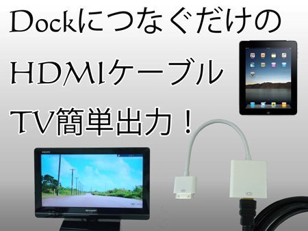 It is a cable that connects to iPad 3 (3rd generation), iPad 2, iPhone 4 · 4 S, touch 4 and can output video and music to large screen TV · projector etc using the included HDMI cable (2 m).
