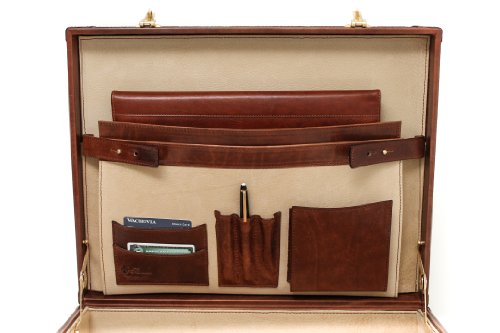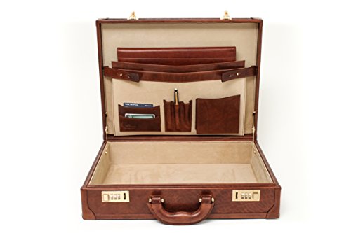 Studio : Tony Perotti Publisher : Tony Perotti Product Description The Venezia Leather Attache Case is an exquisite and elegant work of Italian craftsmanship. This is a larger version of the Venezia Attache Case. The Full Grain leather is molded around a solid wood frame, providing a beautiful finish. This midsize attache case is ideal for anyone looking to exude professionalism and class, while still getting the most out of your case-it has ample space to fit a Laptop up to 15" and still carry all of your belongings. The rigid structure and robust closing mechanism ensure the contents inside the case are well protected. Top quality and superior hardware, features dual combination lock, sturdy and easy to open hinges, bottom legs for protection, comfortable and easy to grasp top handle. Corners are padded by a leather corner guard giving the bag a unique look. Attache case features two adjustable document folders, cellphone holder, three business and credit card holders, and three pen holders. Dimensions: Exterior: 18"(L) x 14"(H) x 5"(W). Interior: 16.5"(L) x 13"(H) 3"(W).The Venezia Leather Attache Case is part of our Tony Perotti Italico leather collection, made from Italian adult Bull hide Full Grain leather, providing a durable, stronger and longer lasting leather that is smooth to the touch with a shiny glossed finish. The cool Italian weather prevents any flea or tick irritation to the animals attributing to the top quality and purity of the leather, devoid of any scratches or bites on the leather. Tanned in a heavy coating of different eco-friendly vegetable oils to prevent everyday scratches and blemishes, the natural surface of our full grain leather burnishes and beautifies over time. Our Italico collection products come in a signature plaid interior lining for added style and fashion.Our Tony Perotti products are backed by a limited lifetime warranty. Please contact the Distributor Tony Perotti USA. 0