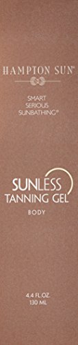 Hampton Sun's Sunless Tanning Gel creates the ultimate self tanning experience. This unique gel creme gives a natural looking, streak-free tan within hours of application. This formula features natural ingredients that improve skin's quality and allow you to customize your own perfect tan. Using natural ingredients including walnut oil, aloe vera, and chamomile, the gel leaves the skin incredibly smooth and moisturized, with no harsh chemical scent or sticky film. Want an even darker tan? Simply apply two coats to achieve a deeper glow. The long-lasting formula dries quickly and once tanned, the advanced formula fades down evenly. Aloe and chamomile soothe and tone your skin while erythrulose (natural fermented red raspberry!) brings your skin to its best natural-looking shade and helps your tan last longer.Feature