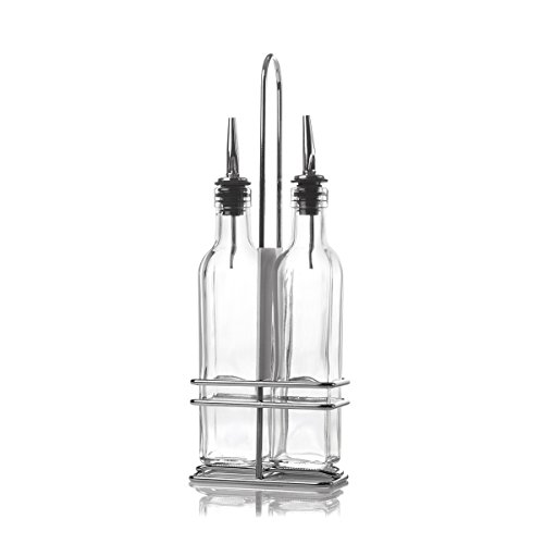 -. Title : FortheChef's 2 Square 8 Oz. Oil & Vinegar Cruets with Pourers and Chrome Rack Set