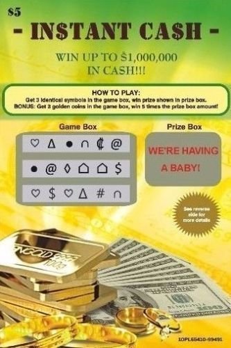 Studio : Easyshop-123 Publisher : Easyshop-123 Binding : Health and Beauty Product Description Looking for the perfect way to announce your pregnancy? ? We understand that it can get frustrating thinking of unique ideas... We have therefore created the PERFECT surprise idea, in the form of a fake lottery card! You will have your player so surprised, and both of you will always remember this important moment! ? The game is very simple. In the left box, underneath the gray scratch area, there is a series of random symbols. In order to win, player must identify 3 of the same symbols. Once 3 of the same symbols are identified, player then scratches the prize box to the right, where it will state "WE'RE HAVING A BABY!". Of course, every lottery card is a winner, with 3 matching heart symbols. ? Card measures 4" x 5.75", for the perfect authentic looking size! Fake lottery ticket can fit in any standard size envelope (envelope not included). Cards are fake and are only a replica of lottery cards, and have no redemption value. For fun purposes only! ? If you are to have any questions or concerns, please do not hesitate to message us, and we will gladly help you right away! ? Many customers have successfully announced with this fun game, and were very happy with the results! This is the perfect idea for a pregnancy announcement, and you will definitely be truly satisfied! ? Also great for those who enjoy playing lottery games! ? Hope you enjoy, and have a healthy pregnancy!! 0