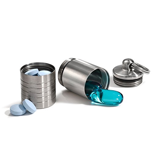 CUSTOMIZABLE CAPACITY - Two separate SS chambers included, additional chambers available. Diameter - 0.75"; Height - 2.3" (0.85" per chamber); Weight 2.0 oz