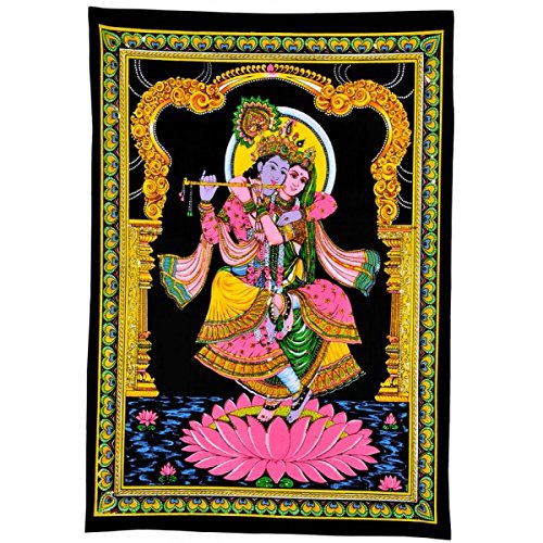 Gangesindia Hindu God Krishna With Radha Rani - Cotton Painting
