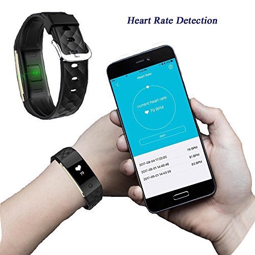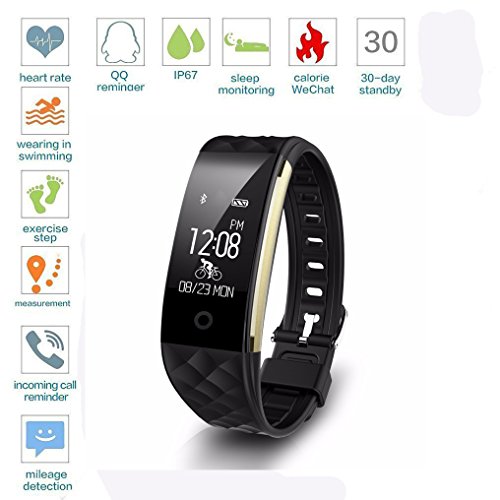 -. Feature : 【Multifunction】:Heart rate monitor,pedometer,watch,calories counter,sleep monitor,sedentary reminder,SMS and call notification,remote camera control, anti-lost and find phone function / 【Heart Rate Monitor】Heart Rate Monitor may exercise Heart Rate Monitor and to remind, allowing you to take the well-being of the condition scientifically and grease has been constantly and efficient use. It can monitor your heart rate automatically, and you can also measure your heart rate manually. / 【Track All Day Activity】Track all-day activities. It can display steps taken, distance traveled, calorie burned, activity route etc. It suit for various mode of Sports. Such as running, walking, squat, basketball, etc. / 【IP67 Water-Resistance Grade】IP67 Waterproof Design, up to 1 meter underwater(no more than 30 minutes),that means you can still wear it while swimming in pool. normal washing hands and showering are also OK, but please do not use it in sea(saline water) or hot water(more than 40℃/104℉),that may cause defective. / 【Wider Compatibility】App supports most smart phones with Bluetooth 4.0 or above(not for tablet). Support system: iOS 7.0 like iPhone 7/6/6s/SE/5 or above(not for iPad), Android 4.3 like Samsung LG or above.Download APP "Smart Wristband "or scan the QR code P.R.Inted on the manual. Open Bluetooth to join in and then begin to use it.