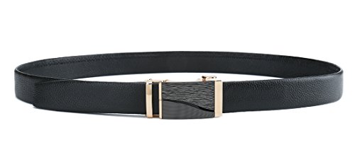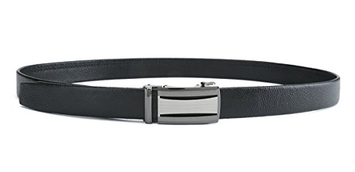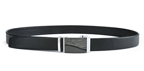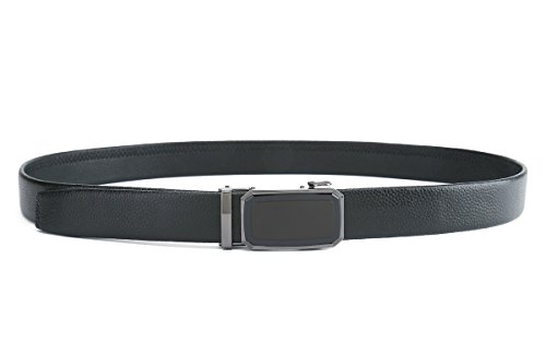 Peroxhide Men's Nappa Leather Ratchet Dress Belt with Automatic Buckle Gift Box Set (Custom:Up to 44" waist, FT728-RFB rifle color Black Buckle With Black Leather)