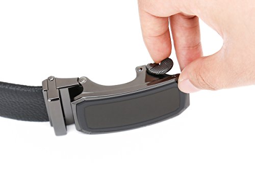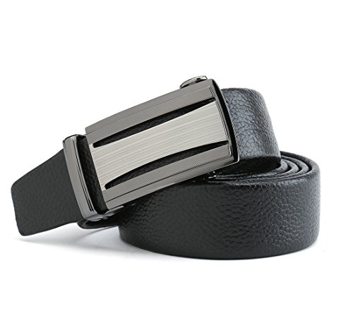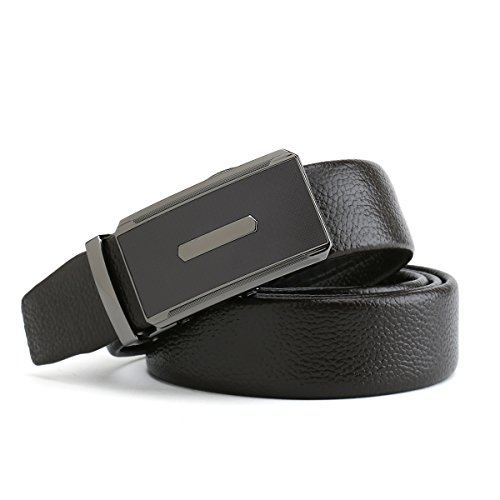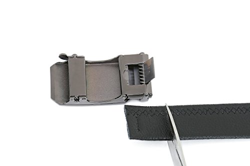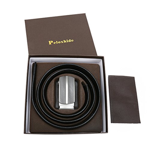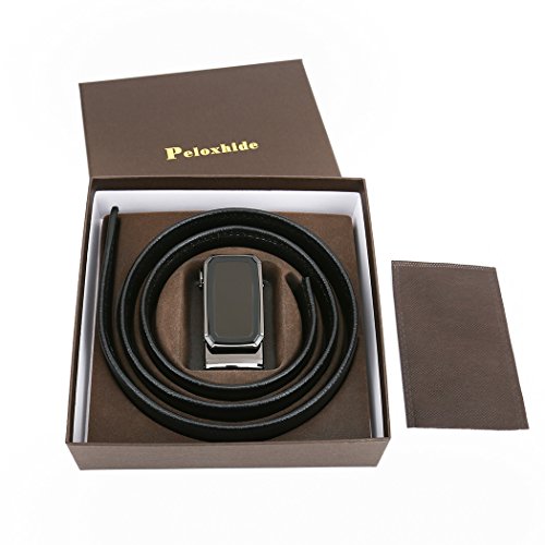 Peroxhide Men's Nappa Leather Ratchet Dress Belt with Automatic Buckle Gift Box Set (Custom:Up to 44" waist, HF0500B rifle color Buckle With Black Leather)