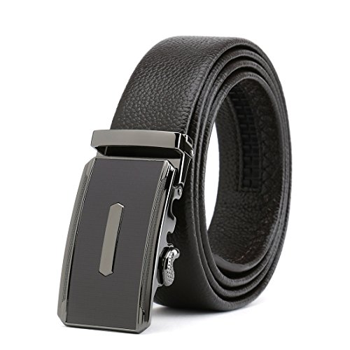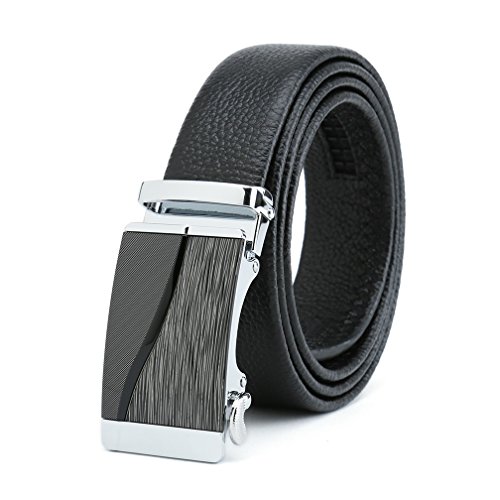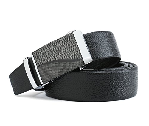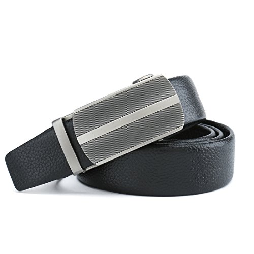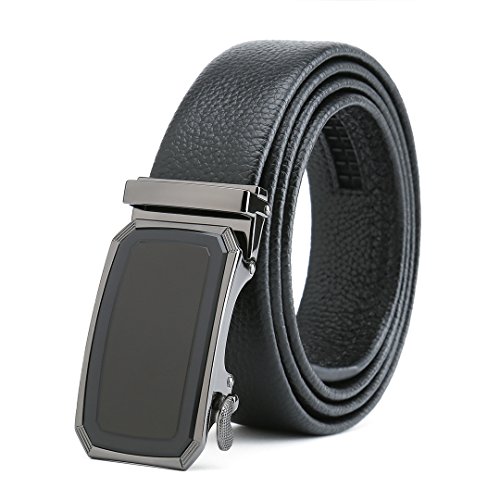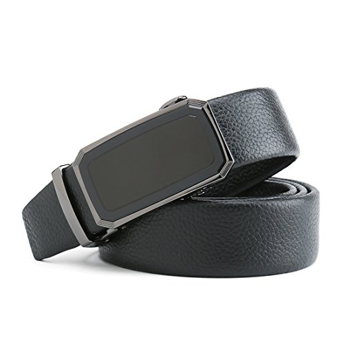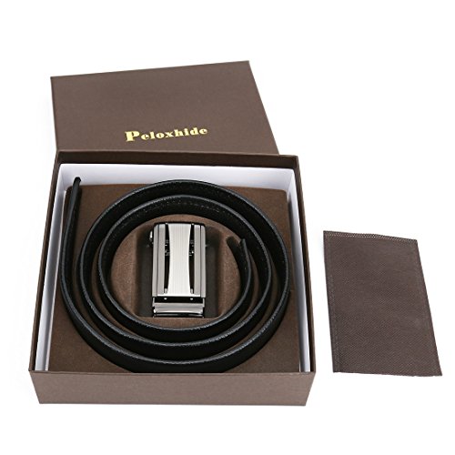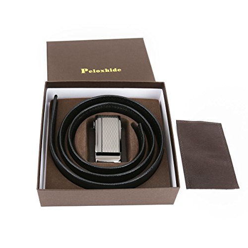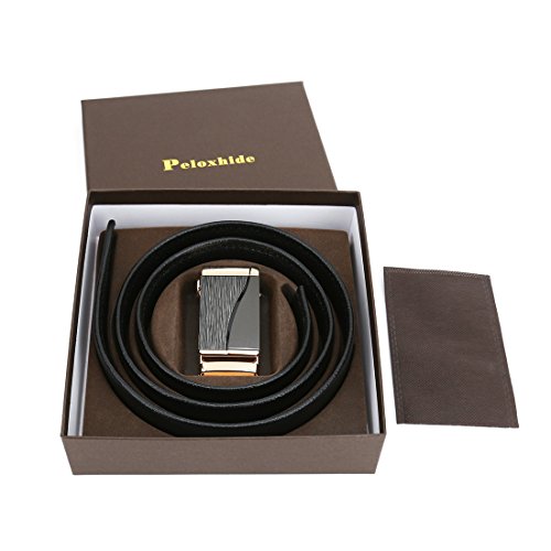 Peroxhide Men's Nappa Leather Ratchet Dress Belt with Automatic Square Buckle Gift Box Set (Custom:Up to 44" waist, Black leather)
