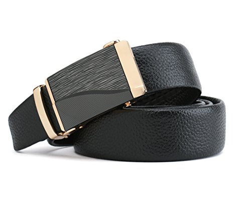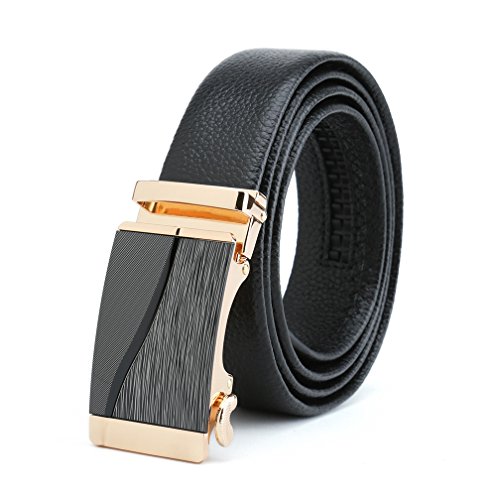 Peroxhide Men's Nappa Leather Ratchet Dress Belt with Automatic Buckle Gift Box Set (Custom:Up to 44" waist, B709B rifle color gold laser Buckle With Black Leather)