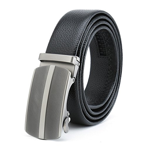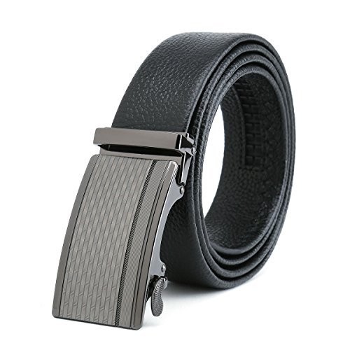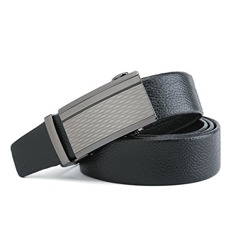 Peroxhide Men's Nappa Leather Ratchet Dress Belt with Automatic stripe decoration rifle Buckle Gift Box Set (Custom:Up to 44" waist, B708B rifle color Buckle With Black Leather)