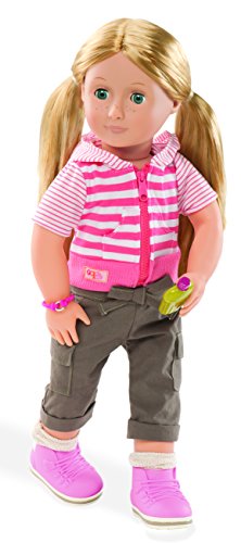 COMES WITH GREAT STUFF! - Shannon has long dark blonde hair, aqua-blue eyes that open and clothes, and comes with lots of great travel accessories, including a hoodie, cargo pants, pair of knit socks, rope bracelet, canteen, an Our Generation storybook, "Magic Under the Stars," and much more! For a full list, see the description below.
