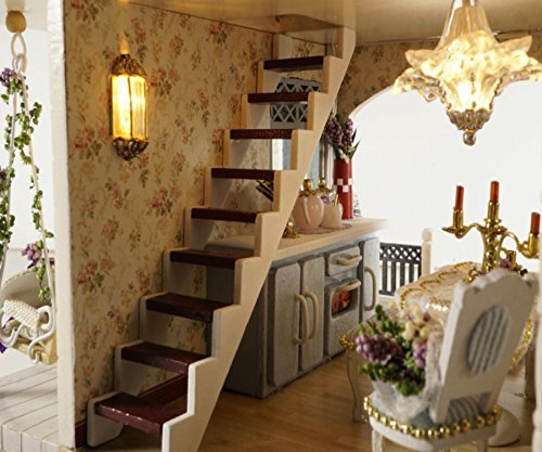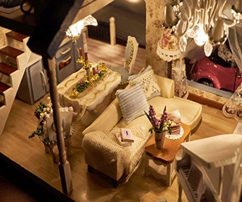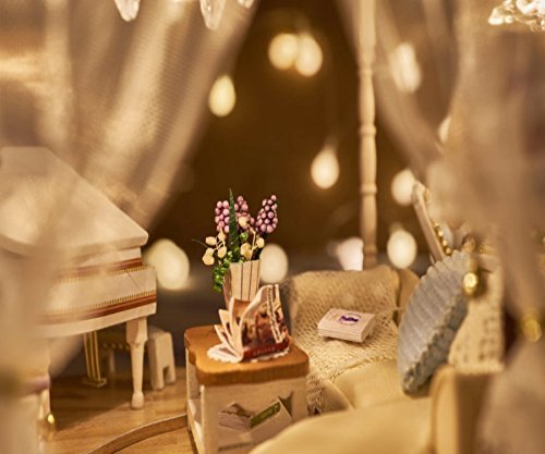 Feature : • All furnitures and accessories are included (With Dust proof Cover), This is a need to DIY toys, English Color Instruction, each steps has pictures to show you how to DIY, Finished house Size: (L) 12.6" * (W) 9.4" * (H) 8.1" Scale1:24 scale / • Stimulates children's brain development by series of playing, Safe and non-toxic,Pretty and interesting,Gift box packaging looks to be the best gift for children. / • Novice really like making friends, then slowly enjoy the assembly process it, after seeing his new production of the finished product, the hearts will be infinite joy and sense of accomplishment. / • DIY house is the miniature of real house, All the materials are almost the same as real house so cute and beautiful. / • It can also play music, It's very romantic to send it to friends, lover, family, kids... Means more to make it by yourself!