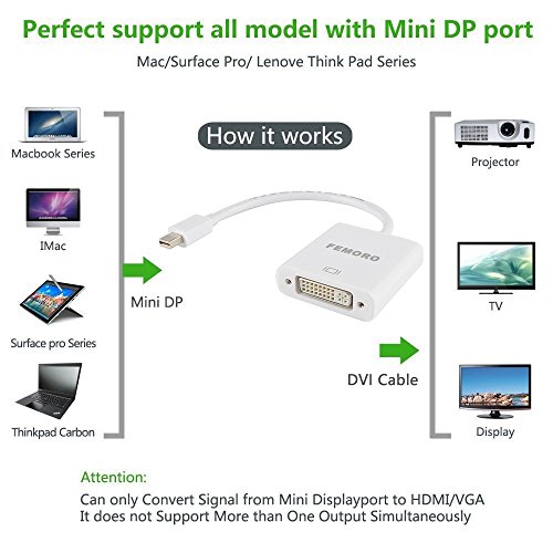 Mini Display to DVI Adapter, FEMORO MDP DisplayPort(Thunderbolt Compatible) to DVI-I Adapter Convertor Male to Female Dual Port for Apple, Mac MacBook Air Pro,Surface Pro3 Lenovo HDTV