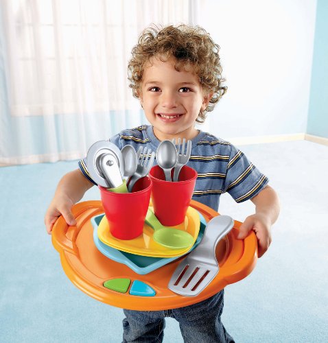 - Feature : The Fisher-Price Servin' Surprises Kitchen & Table is an interactive play center that brings kitchen and food role-play to life / Recognizes every Servin' Surprises food item and responds with appropriate phrases, sound effects and songs / Oven slides off and stovetop flips to convert into an activity table / Center of table also provides storage for easy clean up / Comes with magical serving tray, pizza, cookies and service for 2
