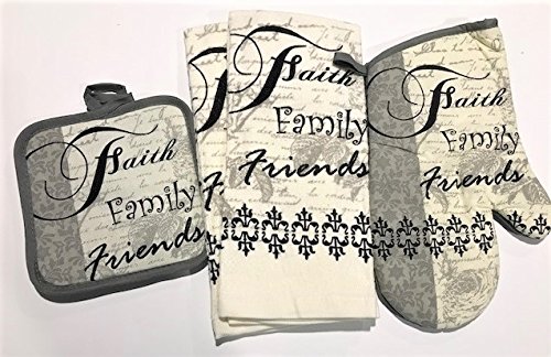 Inspirational Sentiments 5 PC Kitchen Linen Set Two Towel, Two Pot Holders, & One Oven Mitt (Faith Family Friends)
