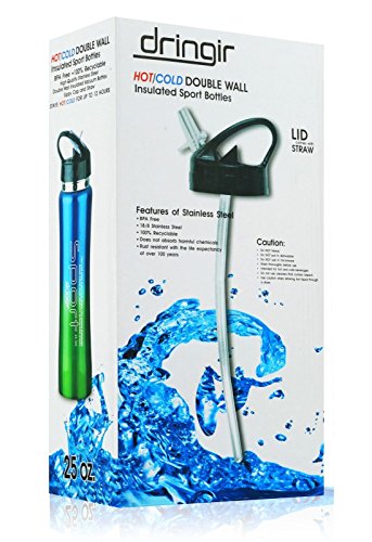 -. Feature : TWO UNIQUE, REUSABLE WATER BOTTLES: Forget all about plain plastic bottles that get crushed and create too much waste. These two stainless steel water bottles are the most eco-friendly and practical choice! The Dringir insulated water bottles come in two different sizes (17oz and 25oz) and two amazing colors, and you can take them with you at work, at the gym, when you travel and when you go hiking or camping. / KEEP YOUR DRINK IN THE RIGHT TEMPERATURE: Do you want your water to remain fresh and cool? Do you want to keep your coffee delightfully warm for as long as possible? The double walled vacuum insulated water bottles will maintain your drink in the right temperature until you take the last sip! You can finally enjoy your drink! / NO MORE LEAKS AND WATER RING MARKS: Don't you hate it when your plastic water bottle leaks and wets your bag and clothes? Aren't you tired of cleaning water ring marks? The insulated sports bottles have a sweat-proof technology, so their exterior will never sweat and leave rings on your tables. As for their lids, they're double walled, so there is zero chance of leaks. / COMES IN A BEAUTIFUL GIFT-READY BOX: Are you looking for a practical and beautiful gift for someone special? Then look no more, because the Dringir stainless steel water bottle set is the perfect gift idea! The two BPA free bottles come in a luxurious giftready box so there's no need to waste money for wrapping paper. Plus, your friend is going to love the unique design and practicality of the reusable water bottles! / YOUR SATISFACTION IS GUARANTEED: Here at Dringir your satisfaction is out top P.R.Iority. For this reason, we have backed up our stainless steel water bottle set with a money back guarantee. So in the unlikely case that you're not completely satisfied with the insulated water bottles, we will refund you - no questions asked!