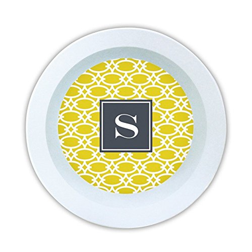 Whitney English Fretwork Melamine Bowl with Single Initial, Y, Multicolored