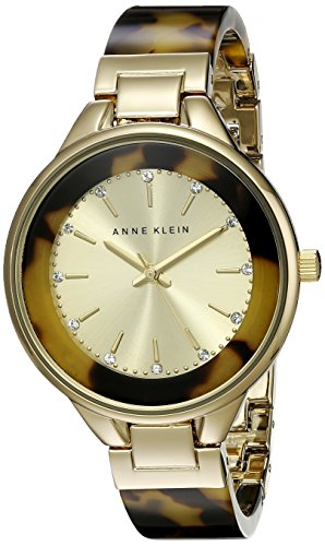 Anne Klein Womens AK/1408CHTO Swarovski Crystal Accented Gold-Tone Tortoise Resin Bangle Watch