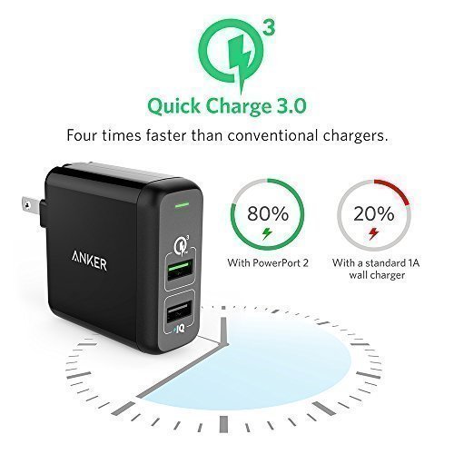 -. Feature : The Anker Advantage: Join the 10 million+ powered by America's leading USB charging brand. / Qualcomm Quick Charge 3.0: Uses Qualcomm's latest USB charging technology. Up to 4x faster than standard chargers, capable of charging compatible devices to 80% in just 35 minutes. / Compatibility: Backwards compatible with all versions of Qualcomm Quick Charge technology. Can also provide high-speed charging for non-Quick Charge devices via the PowerIQ port. / Travel Ready: A foldable plug, compact size and international voltage compatibility (AC 100-240 V) make it the ideal travel companion. / What You Get: Anker PowerPort 2 with Quick Charge 3.0, welcome guide, our worry-free 18-month warranty and friendly customer service.