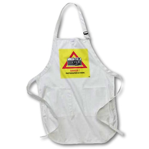 3dRose apr_37722_1 Danger Photographer at Work Mixed Text Color-Full Length Apron, 22 by 30-Inch, White